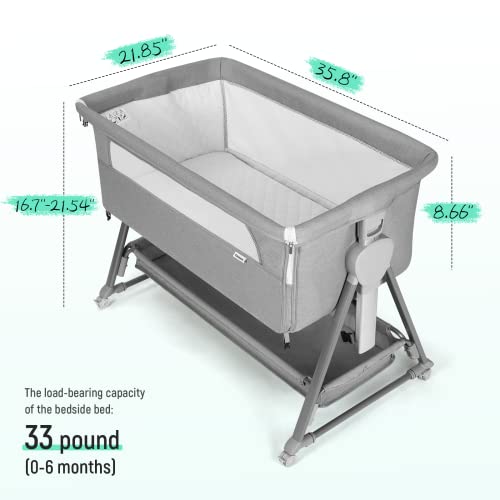 - 99% No Gap: Bassinets strictly follow the U.S. safety requirements and parents of the bed have 99% no gap, so that the mother can see the baby's condition at the turn of the head, safe care of the baby, infinite convenience mother.Suitable height for parents bed: 21.25''-26''