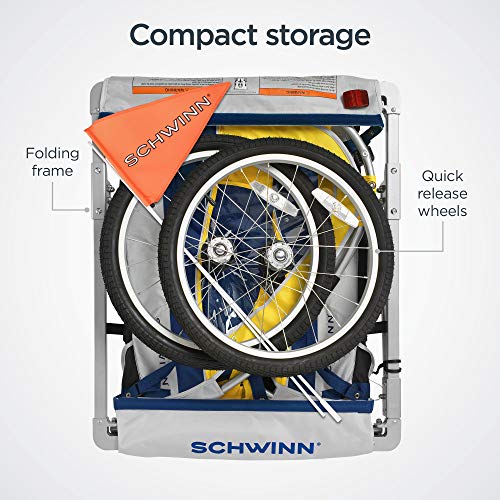 Schwinn Echo Child Bike Trailer, Double Baby Carrier, Canopy, 20-inch Wheels, Yellow